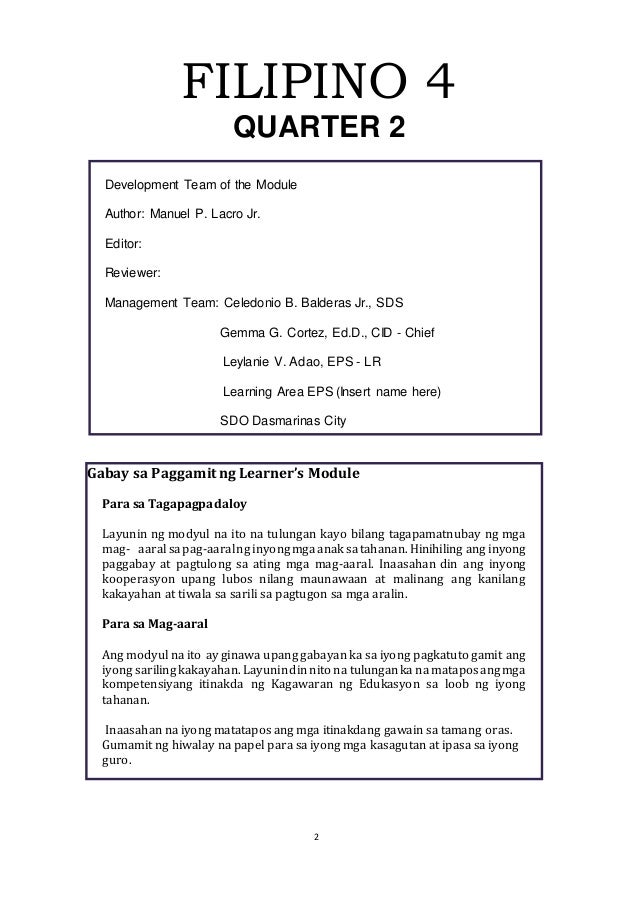 Module Filipino 4 Nakasusulat Ng Talatang Naglalarawan