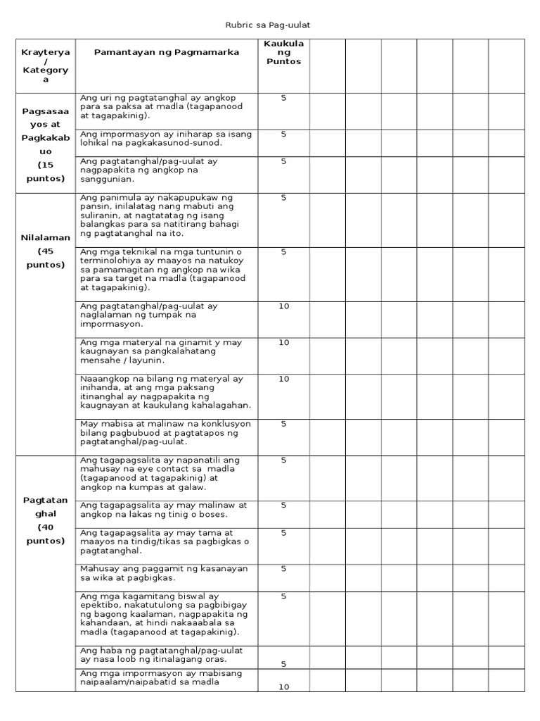 Rubrik Sa Pagsulat Ng Monologo