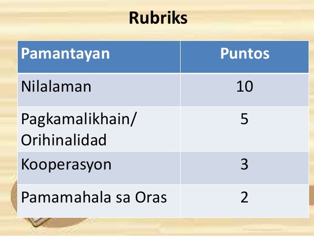 FILIPINO PPT liham report 3. Halimbawa ng rubric sa pagsulat ng sulating pangwakas. Nauunawa-an ang nilalaman subalit may ilang naisamang detalyeng di kailangan at di maunawaan Maraming kulang na.