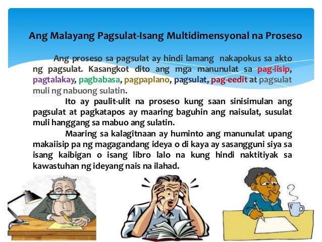 Prosesong Pagdulog sa Pagsulat ng Ibat ibang Teksto sa Elementarya. Bilang panghuli basahing mabuti ang buong sulating. Pormulasyon ng palilinawing mga simulain ng mga tiyak na kaisipan upang makalikha ng malinaw at sistematikong paraan ng paglalarawan o pagpapaliwanag ukol dito.